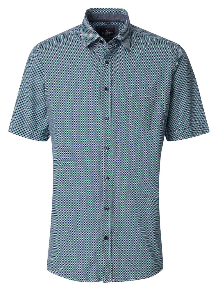 Das CASAMODA Modern Fit Freizeithemd verkörpert die zeitlose Eleganz für den anspruchsvollen Gentleman. Mit seinem modernen Schnitt vereint es klassische Handwerkskunst mit zeitgenössischem Design und bietet dabei höchsten Tragekomfort. Das grüne Musterhemd besticht durch seine vielseitige Kombinierbarkeit und sollte in keiner gehobenen Herrengarderobe fehlen. Der vornehme Kent Kragen ermöglicht sowohl formale als auch alltägliche Anlässe mit gleicher Eleganz zu meistern. Perfekt entfaltet dieses Hemd sein volles Potenzial, wenn es mit einer edlen Krawatte und einem großzügigen Knoten kombiniert wird – ein zeitloses Stück für den diskret selbstbewussten Mann.