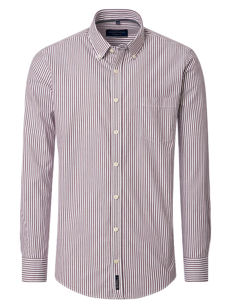 Das komfortable Freizeithemd aus der CASAMODA Comfort Fit Kollektion steht für den kultivierten und modebewussten Mann von heute. Ein klassischer Schnitt verbunden mit modischen Produktdetails verspricht einen hohen Komfort und macht dieses Hemd zu einem Meister der Kombination. Das gestreifte Herrenhemd in der Farbe rot darf in keiner Herrengarderobe fehlen und kann mit dem eleganten und zeitlosen Button-down Kragen zu jedem Anlass sowie im Alltag getragen werden. Mit einer passenden Krawatte und einem großen Krawattenknoten kommt dieses CASAMODA Comfort Fit Herrenhemd am besten zur Geltung.
