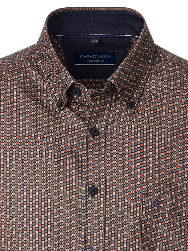 Das komfortable Freizeithemd aus der CASAMODA Comfort Fit Kollektion steht für den kultivierten und modebewussten Mann von heute. Ein klassischer Schnitt verbunden mit modischen Produktdetails verspricht einen hohen Komfort und macht dieses Hemd zu einem Meister der Kombination. Das gemusterte Herrenhemd in der Farbe braun darf in keiner Herrengarderobe fehlen und kann mit dem eleganten und zeitlosen Button-down Kragen zu jedem Anlass sowie im Alltag getragen werden. Mit einer passenden Krawatte und einem großen Krawattenknoten kommt dieses CASAMODA Comfort Fit Herrenhemd am besten zur Geltung.Herstellerinformation: