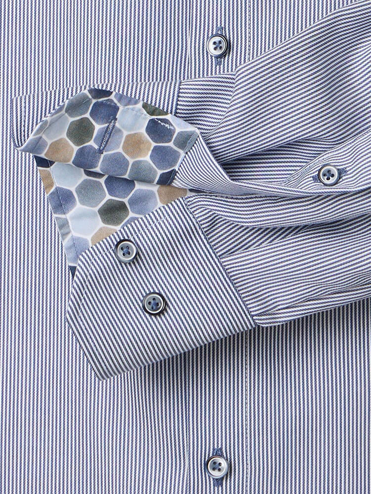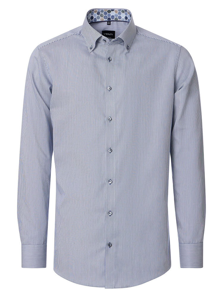 Das moderne Businesshemd aus der VENTI Modern Fit Kollektion steht für den selbstbewussten und modischen Mann von heute. Ein zeitgemäßer Schnitt verbunden mit erstklassigen Produktdetails verspricht einen hohen Komfort und macht dieses Hemd zu einem Meister des Arrangements. Das gestreifte Herrenhemd in der Farbe dunkelblau darf in keiner Herrengarderobe fehlen und kann mit dem vornehmen und klassischen Button-down Kragen zu jedem Anlass sowie im Alltag getragen werden. Mit einer passenden Krawatte und einem großen Krawattenknoten kommt dieses VENTI Modern Fit Herrenhemd am besten zur Geltung.