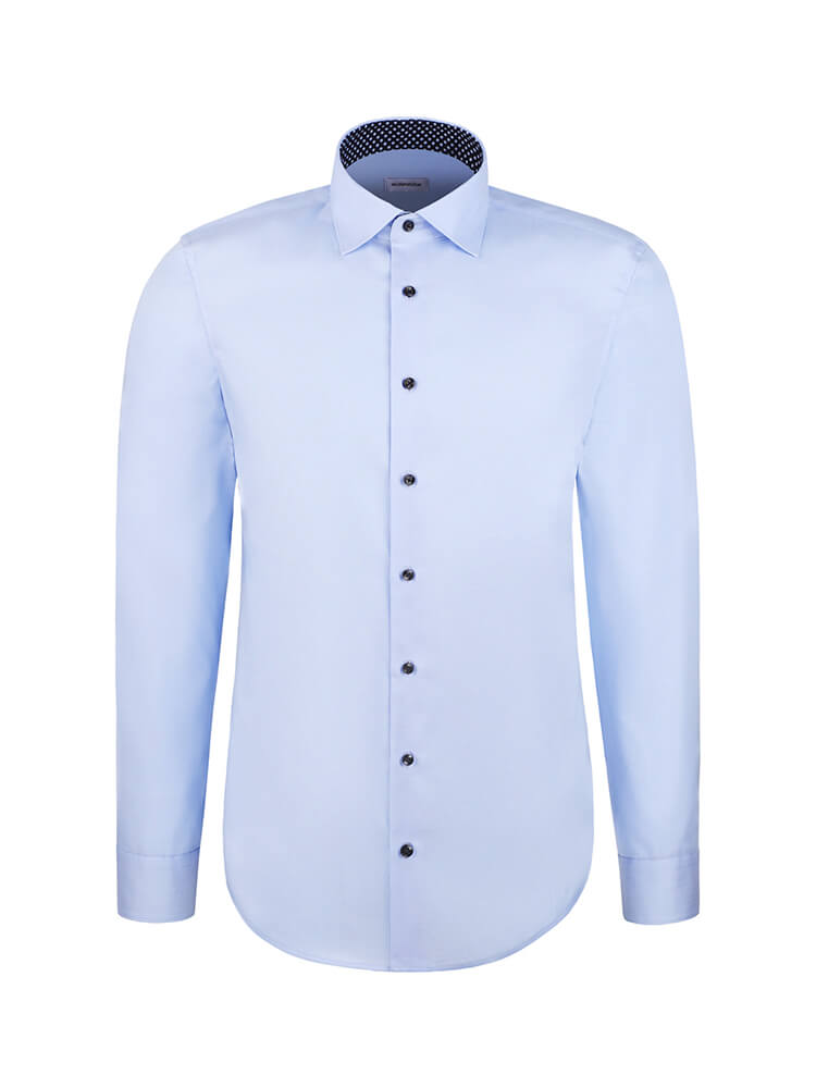 Das elegante Businesshemd aus der SEIDENSTICKER SLIM Kollektion steht für den schlanken und modebewussten Mann von heute. Ein körperbetonter Schnitt verbunden mit modischen Produktdetails verspricht einen hohen Komfort und macht dieses Hemd zu einem Künstler der Kombination. Das unifarbene Herrenhemd in der Farbe hellblau darf in keiner Herrengarderobe fehlen und kann mit dem eleganten und klassischen New Kent Kragen zu jedem Anlass sowie im Alltag getragen werden. Mit einer schmalen Krawatte und einem kleinen Krawattenknoten kommt dieses SEIDENSTICKER SLIM Herrenhemd am besten zur Geltung.