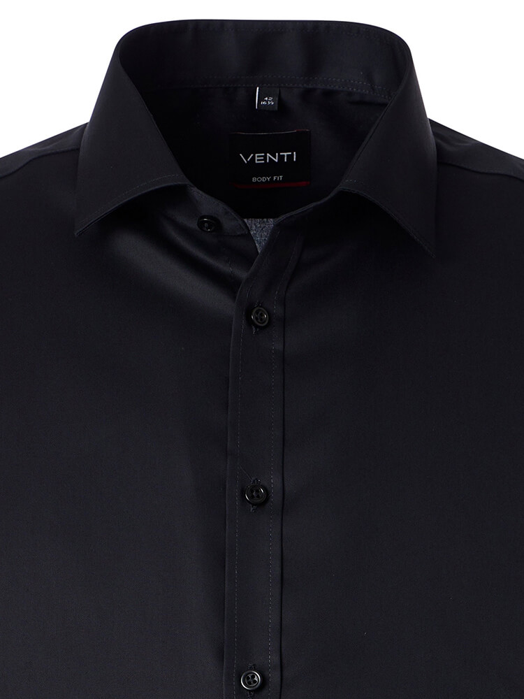 Das elegante Businesshemd aus der VENTI Body Fit Kollektion steht für den schlanken und modebewussten Mann von heute. Ein körperbetonter Schnitt verbunden mit modischen Produktdetails verspricht einen hohen Komfort und macht dieses Hemd zu einem Künstler der Kombination. Das unifarbene Herrenhemd in der Farbe schwarz darf in keiner Herrengarderobe fehlen und kann mit dem eleganten und klassischen Kent Kragen zu jedem Anlass sowie im Alltag getragen werden. Mit einer schmalen Krawatte und einem kleinen Krawattenknoten kommt dieses VENTI Body Fit Herrenhemd am besten zur Geltung.Herstellerinformation: