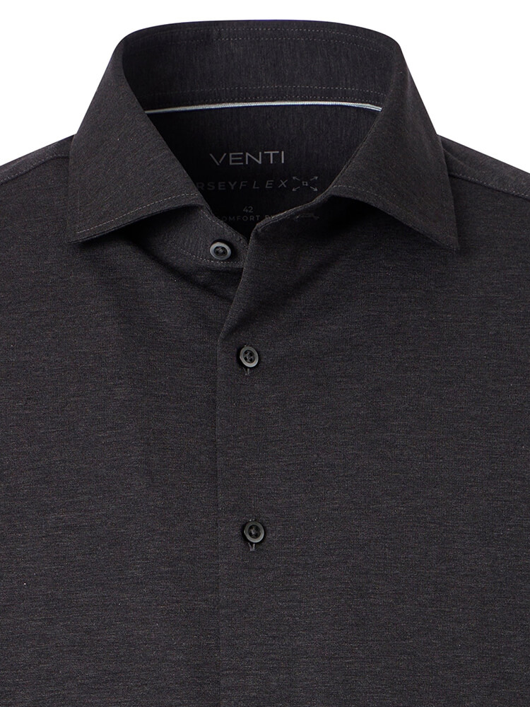 Das Jerseyhemd der VENTI Comfort Fit Kollektion verkörpert die Philosophie des anspruchsvollen Herrenkleidungsstücks: zeitlose Eleganz trifft auf moderne Anforderungen an Tragekomfort. Klassische Verarbeitung verbindet sich dabei mit durchdachten Details zu einem Hemd von vielseitiger Einsetzbarkeit. In softem Anthrazit gehalten, präsentiert sich dieses unifarbene Herrhemd als unverzichtbarer Klassiker für die kultivierte Garderobe – sowohl im geschäftlichen Umfeld als auch im alltäglichen Kontext. Der edle Kent Kragen unterstreicht die zeitlose Designsprache und ermöglicht stilsichere Kombinationen zu jedem Anlass. Ganz besonders entfaltet dieses VENTI Comfort Fit Stück sein volles Potenzial im Zusammenspiel mit einer passenden Krawatte und einem großzügigen Krawattenknoten.