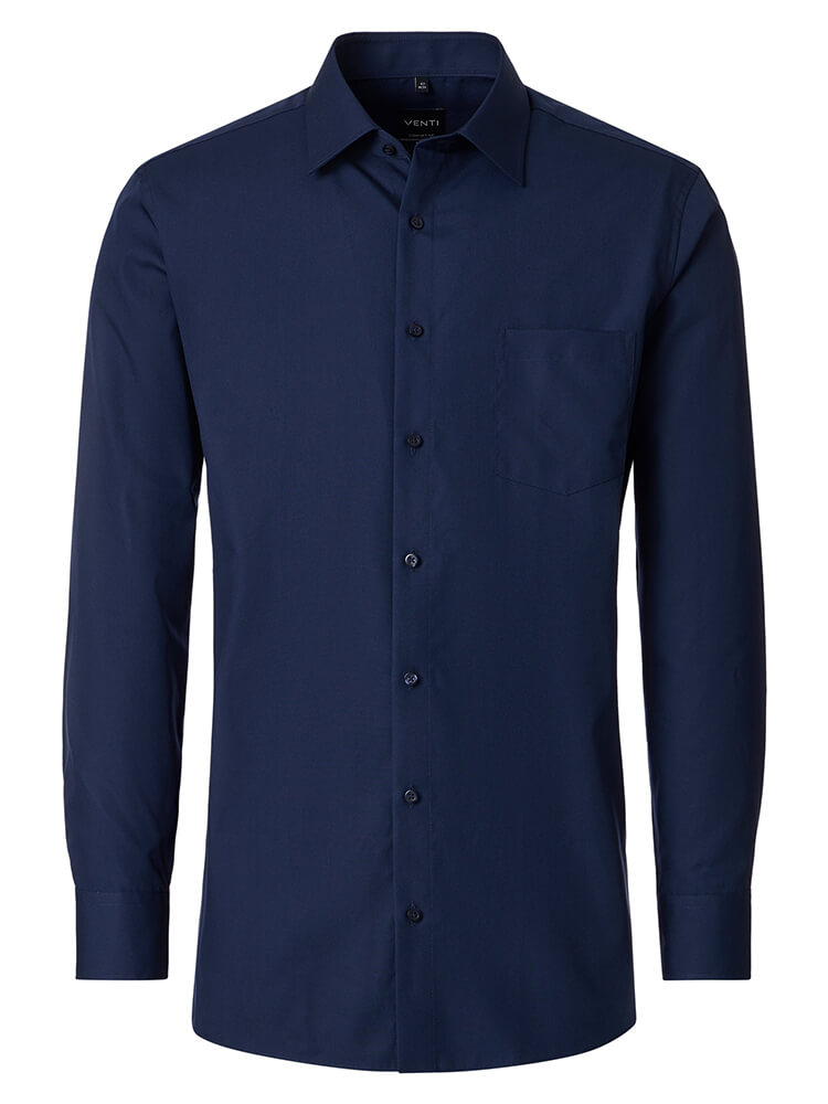 Das VENTI Comfort Fit Businesshemd verkörpert die Philosophie des modernen Gentleman, der Wert auf zeitlose Eleganz und praktischen Tragekomfort legt. In bewährter österreichischer Handwerkskunst vereint dieses Hemd klassische Schnittführung mit durchdachten Details, die höchste Ansprüche erfüllen. Die unifarbene Ausführung in tiefem Dunkelblau ist ein unverzichtbarer Grundstein jeder kultivollen Herrengarderobe. Der elegante Kent Kragen bietet Ihnen absolute Flexibilität – ob beim wichtigen Geschäftstermin oder im täglichen Gebrauch. Kombiniert mit einer feinen Krawatte und großem Knoten entfaltet dieses Businesshemd seine volle, unvergleichliche Wirkung.