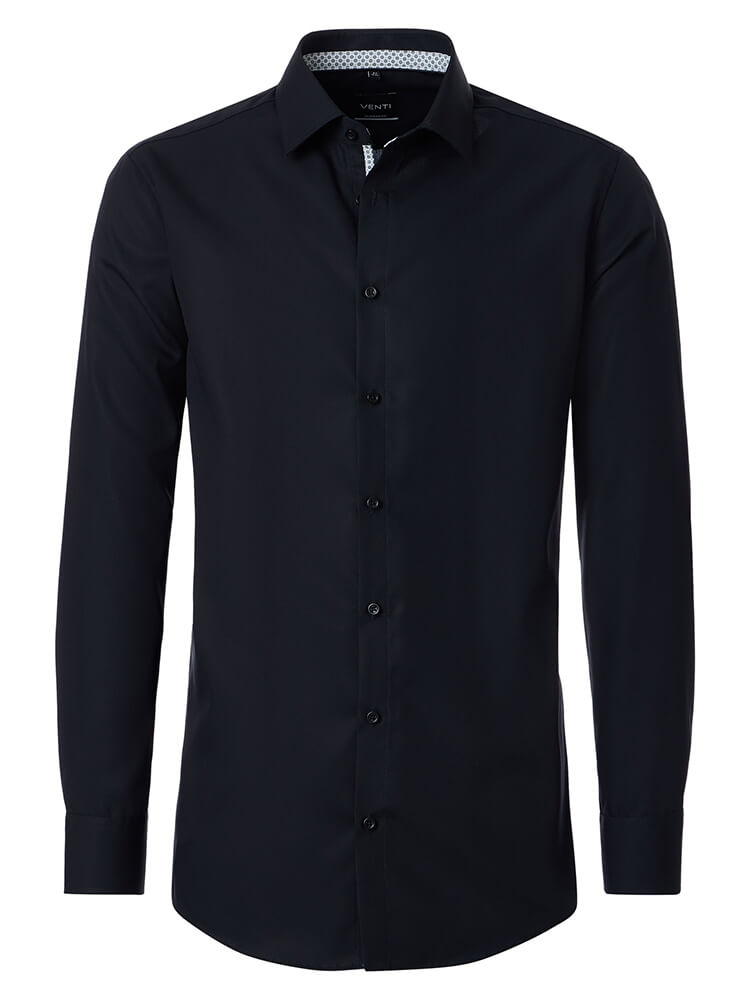 Das VENTI Comfort Fit Businesshemd verkörpert die Philosophie des modernen Gentleman, der Wert auf erstklassige Verarbeitung und zeitlose Eleganz legt. Der bewährte Comfort Fit Schnitt vereint klassische Hemdenkultur mit praktischer Alltagstauglichkeit und bietet dabei höchsten Tragekomfort. In elegantem Schwarz präsentiert sich dieses unifarbene Herrenhemd als unverzichtbarer Grundstein jeder gehobenen Garderobe. Der charaktervolle Kent Kragen verleiht dem Hemd seine distinguierte Note und macht es zum idealen Begleiter für Geschäftstermine wie auch für stilbewusste Privatanlässe. Besonders zur Geltung kommt dieses meisterhaft gefertigte VENTI Businesshemd in Kombination mit einer edlen Krawatte und einem klassisch gebundenen Knoten.