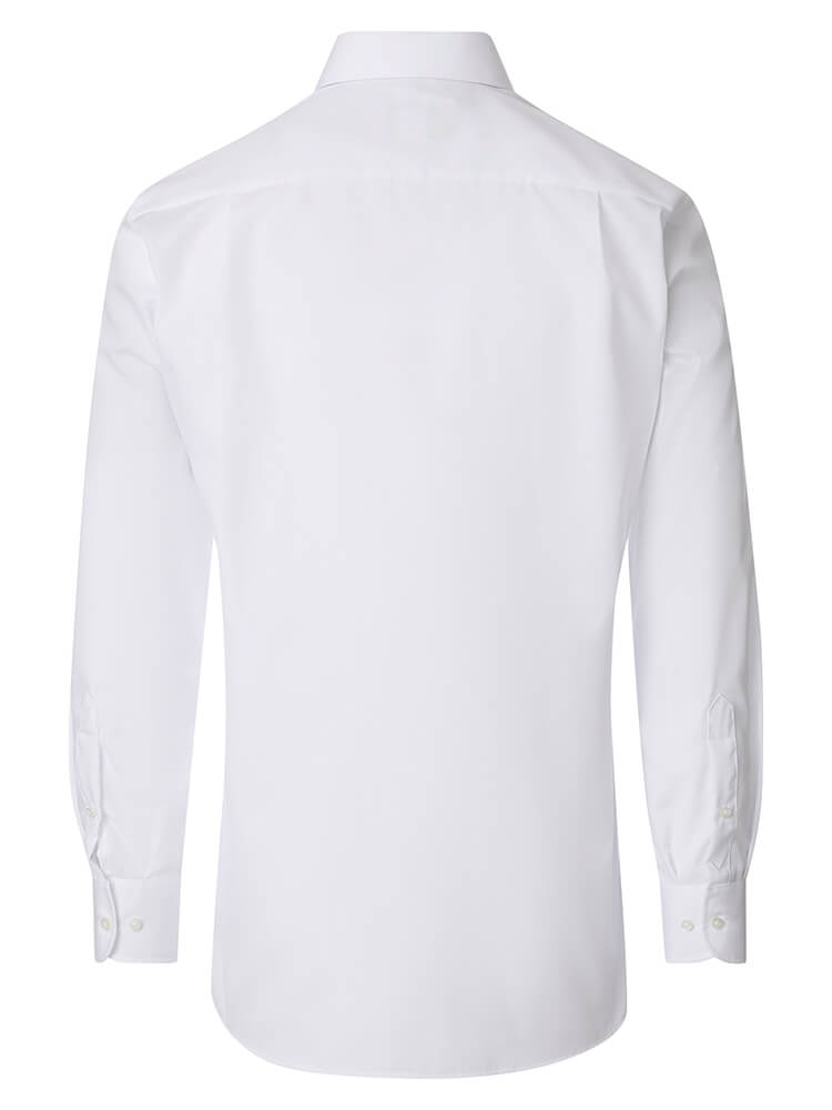 Das unifarbene Herrenhemd in klassischem Weiß ist ein unverzichtbares Grundelement jeder gehobenen Herrengarderobe. Der elegante Kent Kragen verleiht dem Hemd seine charakteristische Distinktion und macht es zu einem vielseitigen Begleiter – ob im geschäftlichen Umfeld oder im alltäglichen Einsatz.