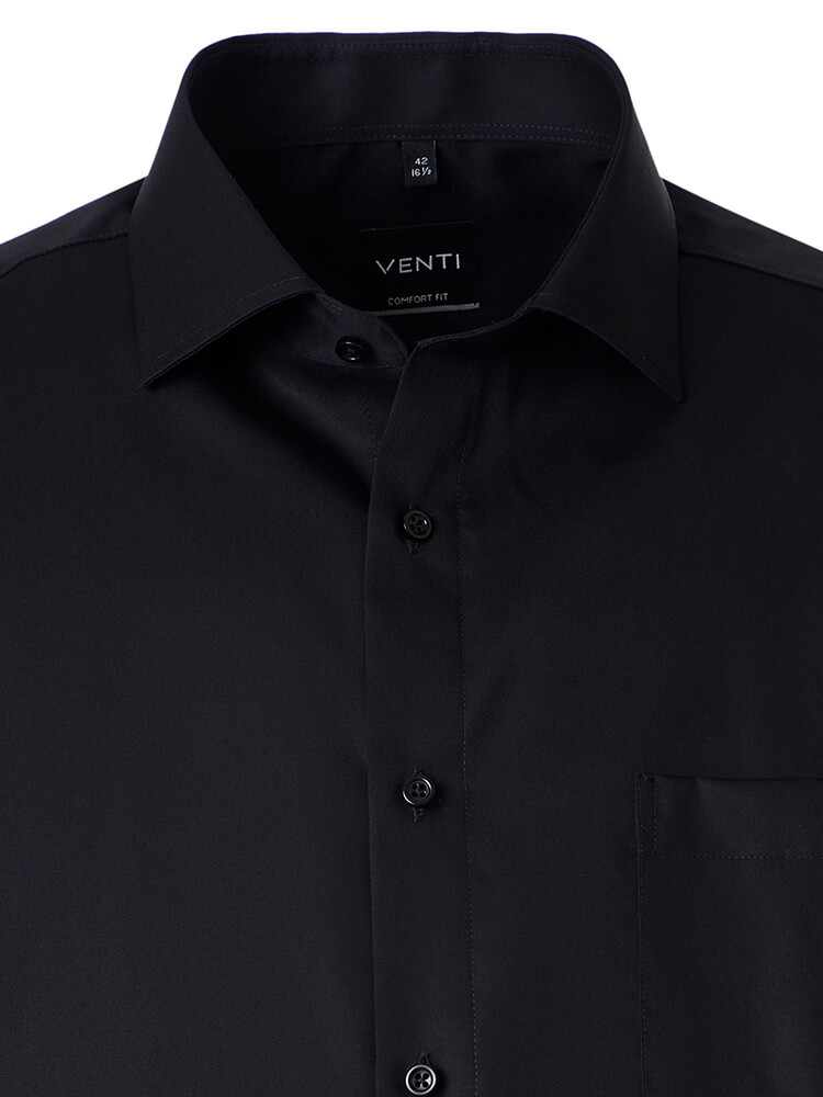 Das VENTI Comfort Fit Businesshemd verkörpert die zeitlose Eleganz, die der anspruchsvolle Gentleman schätzt. Mit seinem klassischen Schnitt und durchdachten Details verbindet dieses Hemd traditionsreiche Handwerkskunst mit modernem Tragekomfort – eine Kombination, die es zum unverzichtbaren Bestandteil jeder gepflegten Herrengarderobe macht. Das unifarbene Design in elegantem Schwarz besticht durch seine Vielseitigkeit und lässt sich sowohl im Geschäftsleben als auch im alltäglichen Leben souverän kombinieren. Der noble Kent Kragen unterstreicht die klassische Ausstrahlung und bildet die perfekte Basis für eine Krawatte mit großzügig gebundenem Knoten – so präsentiert sich dieses VENTI Herrenhemd von seiner besten Seite.