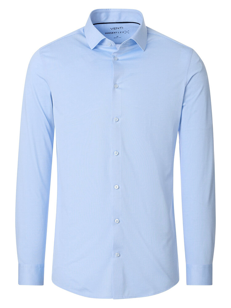 Das VENTI Modern Fit Jerseyhemd verkörpert die Essenz zeitloser Herrenmode für den anspruchsvollen Gentleman. Gefertigt aus hochwertigen Materialien und in zeitgenössischer Schnittführung, verbindet dieses Hemd handwerkliche Präzision mit uneingeschränktem Tragekomfort. Das einfarbige Modell in zartem Hellblau ist ein unverzichtbares Basisstück für jede gehobene Herrengarderobe. Der klassische Kent Kragen, ein Zeichen eleganter Stilsicherheit, macht dieses Hemd zu Ihrem zuverlässigen Begleiter für alle Lebenslagen. Ob im geschäftlichen Kontext oder im kultiviertem Alltag – vollendet wird das Hemd durch eine feine Krawatte mit großem Knoten, die seine Eleganz unterstreicht.